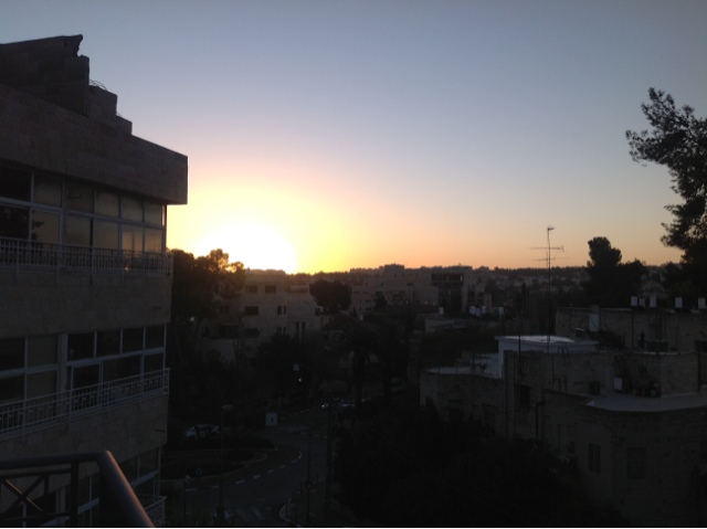 We're here in Jerusalem and I've been completely awake since about 530 am. Now, the skies are blue, the sun is coming up, and I search for coffee...